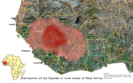 The djembe and the music played with it has its origin with the Malinke people (or Maninka) people of the Mandeng Empire located in West Africa. Today this is mainly Mali, Guinea and Ivory Coast. Drumming was never intended to be an art form. It was and is an integral part of the way of life. Their music is complex, not familiar to Westerners, but the polyrhythms and the swing used in this music is the foundation of todays Jazz and Latin music. The map shows in red the regions where the Djembe is played.